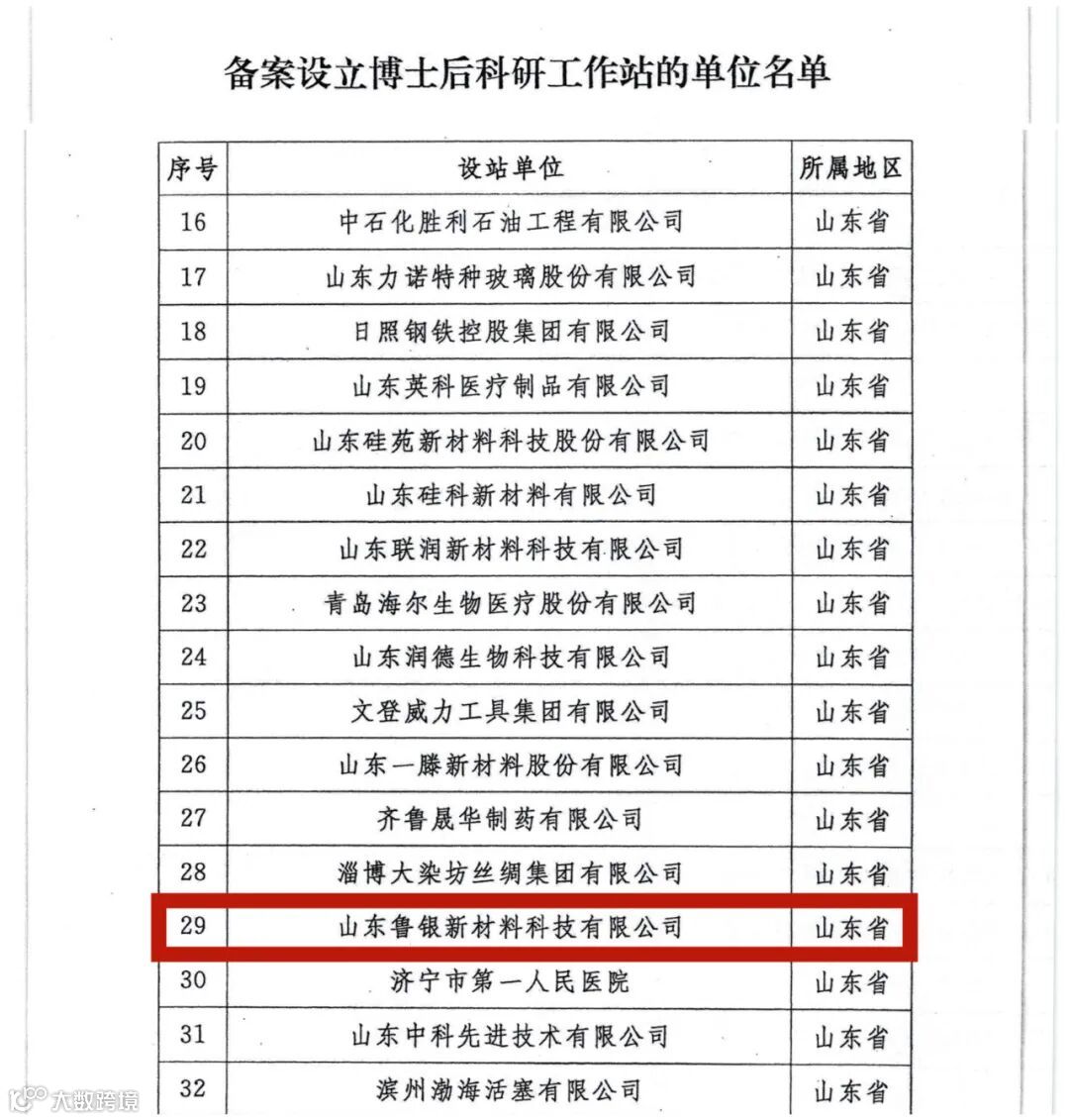 近日,经全国博士后管委会办公室批准,山东鲁银新材料科技有限公司正式获批设立博士后科研工作站。