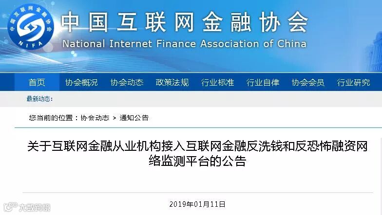 2019年1月,中国互联网金融协会发布关于互联网金融从业机构接入互联网金融反洗钱和反恐怖融资网络监测平台的公告。信和大金融资产家在收到网络监测平台进行反洗钱和反恐怖融资履职登记通知后,积极进行准备和配合相关接入工作,迅速推进、完善反洗钱和反恐怖融资内部控制制度的建设。