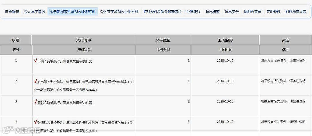 2018年9月7日,北京市金融办发布《关于启动在京注册网络借贷机构自查工作的补充通知》,通知要求网贷机构在按照要求提交资料的同时,应于2018年10月15日前根据《自律检查、行政核查材料清单》的要求将所有材料上传至金管通系统。信和大金融资产家在提交自查报告的同时,认真按照《自律检查、行政核查材料清单》的要求及时上传了各项补充材料。