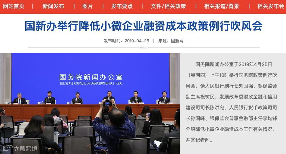在4月25日国务院新闻办举行的国务院政策例行吹风会上,中国人民银行副行长刘国强、中国银保监会副主席祝树民和国家发改委等部门有关负责人围绕降低小微企业融资成本等情况进行了详解。