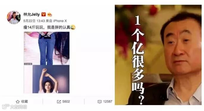 五月的时候,林允发了条微博,言语之间流露出很轻松的样子:“瘦14斤玩玩。”这让我不由想起了王健林说话时也是这种轻松的样子,“定个小目标,先挣他一个亿!”