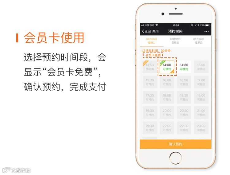 在预约界面,点击你想预约的时间段,显示会员卡免费,确认预约,完成支付就可以了。