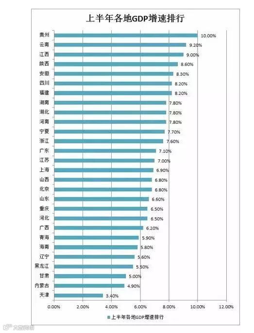增速上,贵州省是目前唯一一个两位数增长的省份,以10.0%的成绩暂居全国第一。
