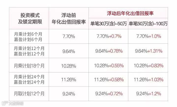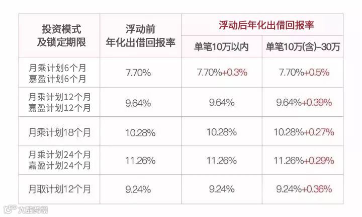 活动期间,信和大金融平台客户出借月乘计划、嘉盈计划6个月、12个月、18个月、24个月,以及月取计划12个月,最高加息幅度可达2.37%。