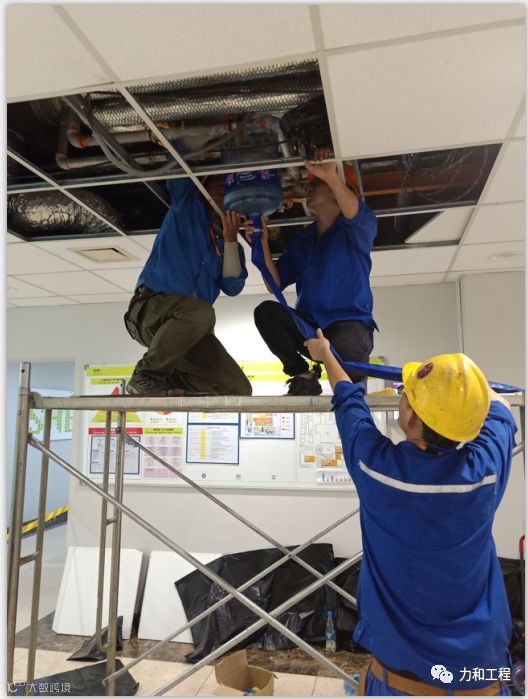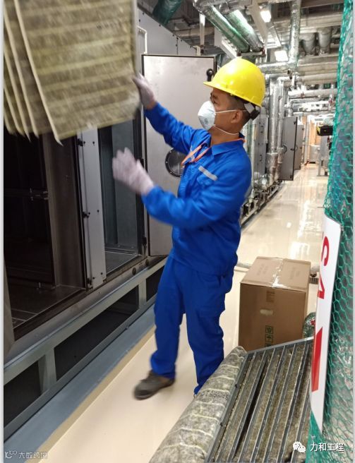 运维团队对设备和设施进行了全面的专项检查,重点对“公用设施中的中央空调系统进行预防性维护”和“实验楼大厅锈蚀多处的FCU冷水管进行更换维修服务”。我司员工始终坚持:“设备设施为第一,安全为中心,人员为根本”的思想开展工作。风机轴承加油、听诊检查电机及风机轴承运行情况、检查更换风机皮带、更换初中效过滤器、清洁空调机箱、检查疏通冷凝水排水U型弯等一系列工作在领导的安排下有条不紊地进行着,此次空调维护中还发现LAHU3-SA 避震弹簧移位底部避震橡胶套、LAHU2-EA3端盖裂、LAHU3-EA避震弹簧需要更换,待购置后及时更换。