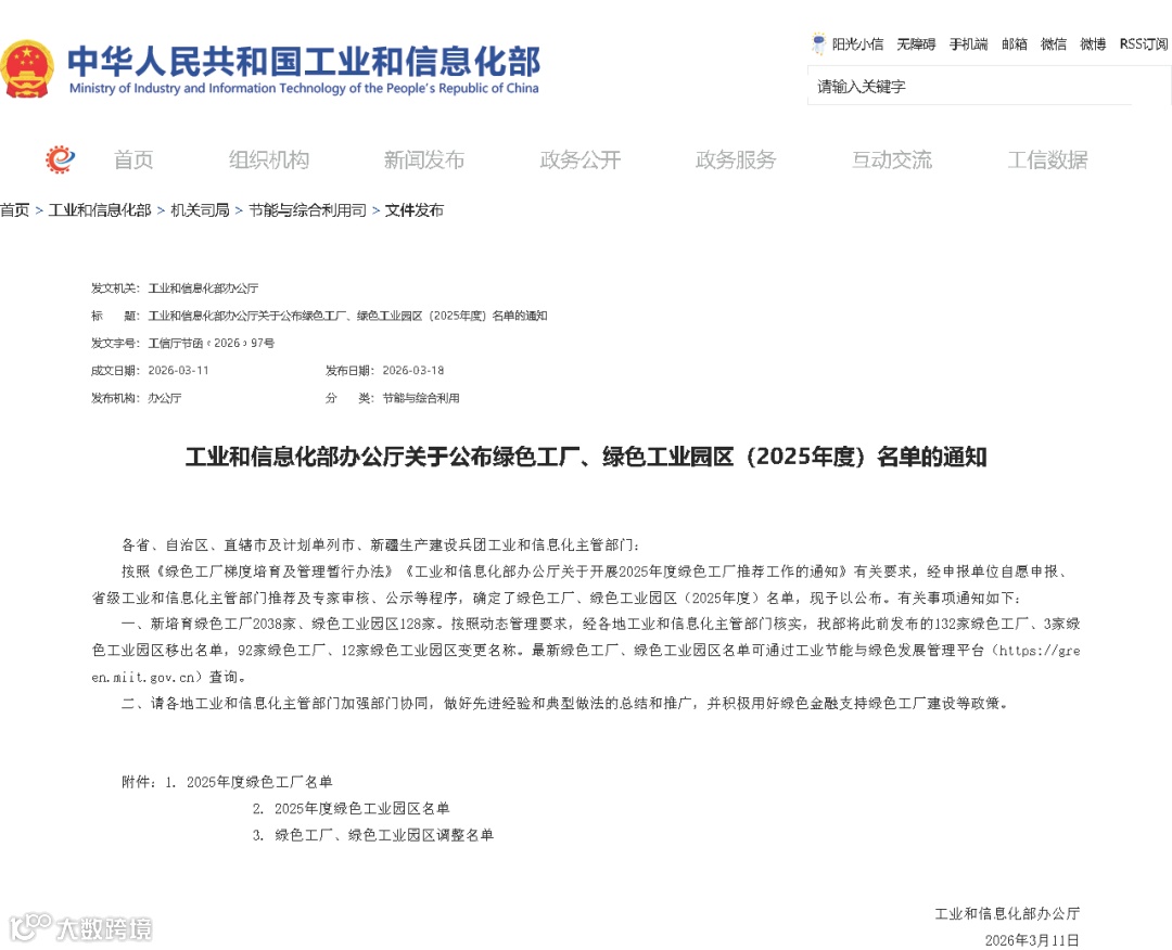 近日,国家工业和信息化部正式公布2025年度绿色工厂名单。雷曼光电全资子公司——惠州雷曼光电科技有限公司(以下简称“惠州雷曼”),凭借在能源低碳化、生产洁净化、产品绿色化等维度的系统性实践,经过严格评审荣耀登榜。