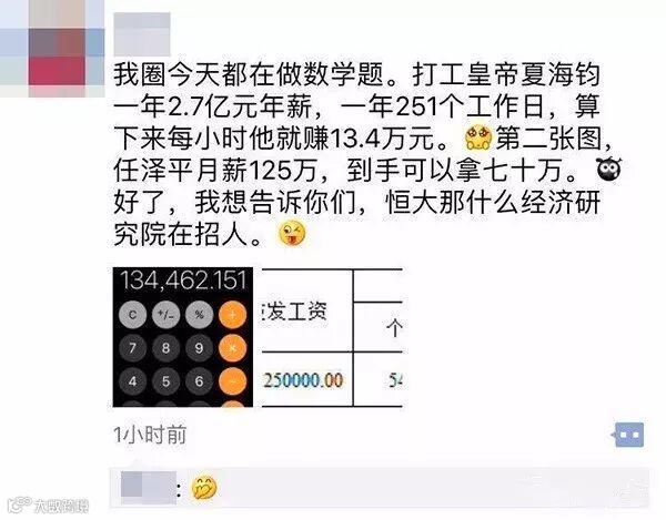 今年7月份,福布斯发布了《福布斯发布香港上市中资股CEO薪酬榜》,榜单显示排在首位的就是恒大夏海钧,薪酬为2.7亿,被称为“打工皇帝”。