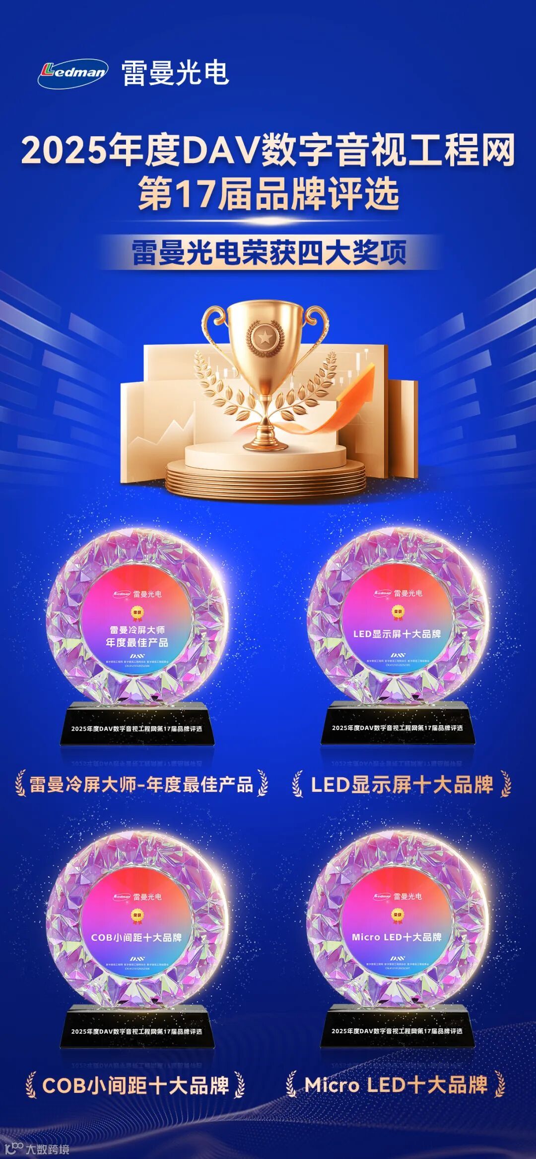 权威认证丨雷曼光电荣膺2025年度音视频行业四大奖项