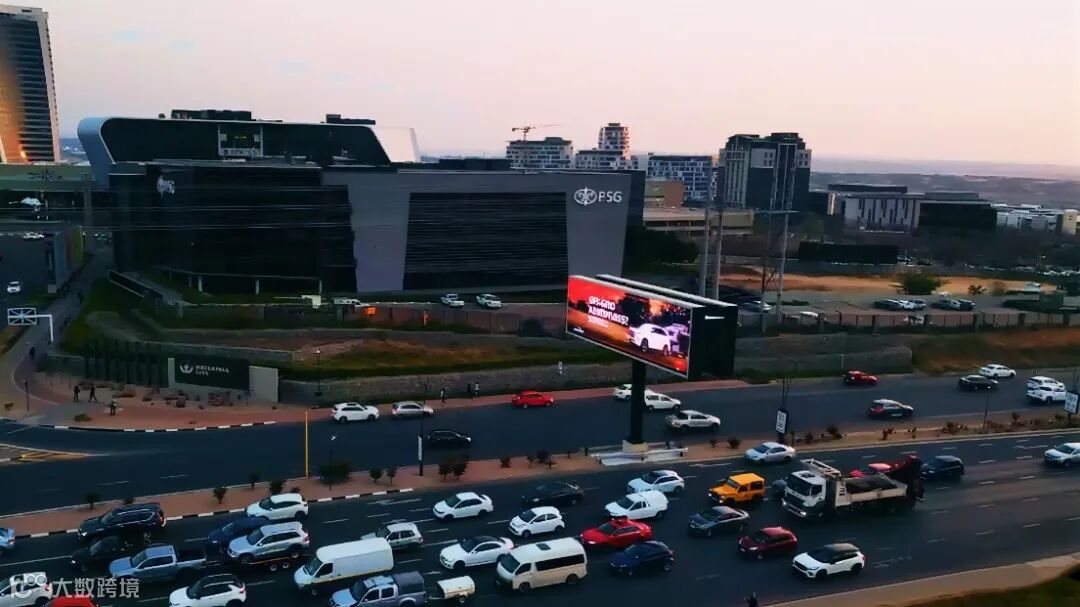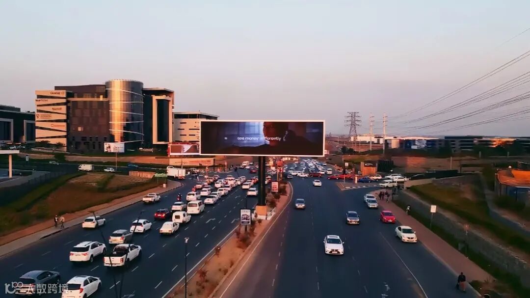 在非洲广阔湛蓝的天空与充满活力的城市背景之下,雷曼光电的LED户外显示屏,为南非主要城市约翰内斯堡某重要交通枢纽,增添亮眼的一笔。两组背靠背组合结构的17.92米宽×4.8米高的LED户外广告大屏,服务着昼夜不息的车流与人潮。