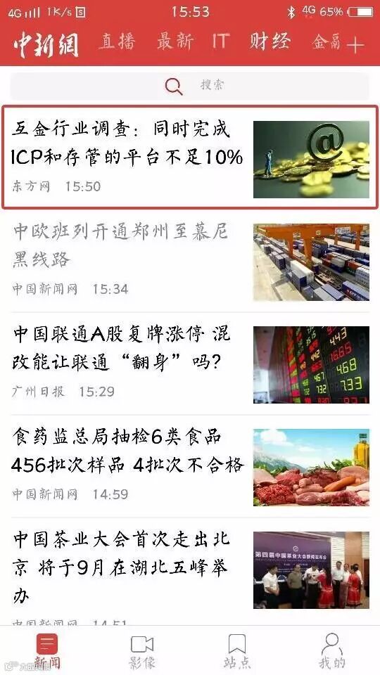 中新网在其手机客户端进行了头版报道