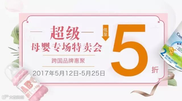 吃、穿、用、玩……这么多好东西,总有一款是宝宝喜欢的。即日起到5月25日,超级母婴专场活动,低至5折,抓紧时间挑选下单哦!