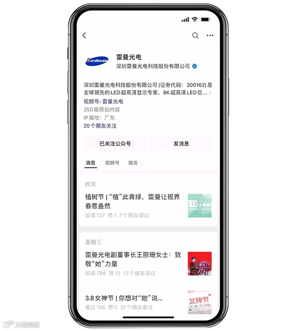 深圳雷曼光电科技股份有限公司(证券代码:300162)是全球领先的LED超高清显示专家,8K超高清LED巨幕显示领导者,中国第一家LED显示屏高科技上市公司,中国航天事业战略合作伙伴,2022北京冬奥会开幕式冰雪五环出品商。