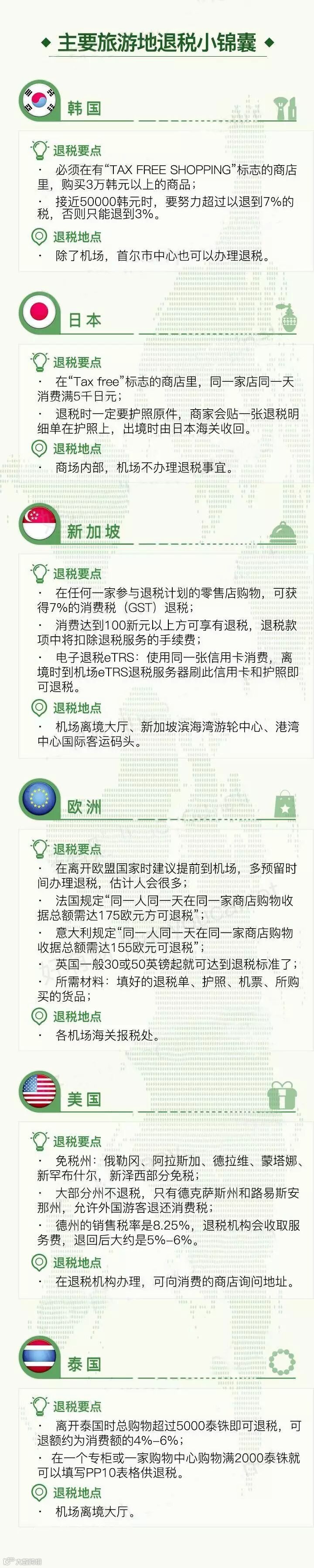 那么,我的消费够不够退税标准?不同国家都在哪里申请退税?机场人太多市中心申请退税可以吗?关于退税,小编已经帮你把主要旅游地的注意事项一一列出,你就对号入座吧!
