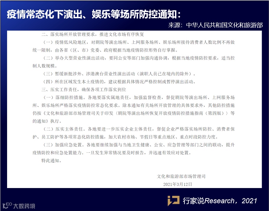 3月12日,文化和旅游部市场管理司发布《关于进一步加强剧院等演出场所、上网