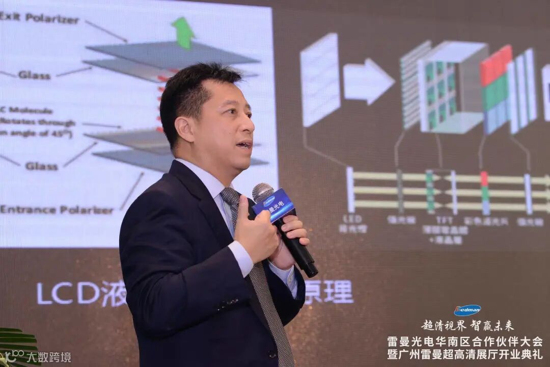 雷曼光电董事长兼总裁李漫铁致欢迎词:“广州是我的第二故乡,我在华南理工大学无线电专业度过了充实的四年,这段经历为后来我创立雷曼光电打下了坚实的基础。广州是国内少数几个将超高清作为城市级战略的都市,大力推进“世界显示之都”、国家超高清视频应用示范区、国家超高清视频产业内容制作基地建设。雷曼光电作为全球领先的超高清LED显示专家,从六年前开始专研COB先进技术,在Micro LED超高清显示产品的研发和生产方面走在国际前列。Micro LED是公认的终极显示技术,市场潜力巨大,我们希望与广大客户及合作伙伴朋友们共享商机,畅游蓝海。”