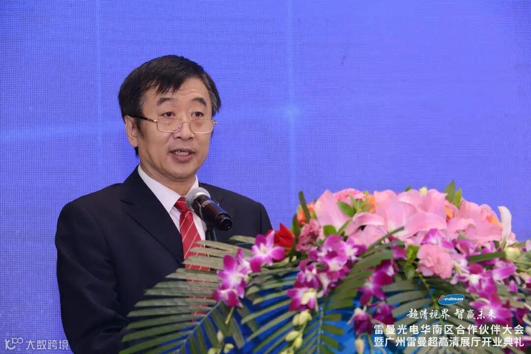 中国光学光电子行业协会发光二极管显示应用分会秘书长洪震致辞。他代表中光协祝贺雷曼光电华南营销中心及广州雷曼8K超高清展厅正式开业。他认为,LED技术路线点间距缩小是LED显示的发展趋势,而随着LED显示技术间距的下探,Micro LED有望迎来产业化的新时代。雷曼光电是较早关注小间距领域并投入研发的先行者,在专业显示做出一定成绩后,继续创新与突破,相信随着产品品类的丰富、新基建的加速,持续创新、追求卓越、知行合一的雷曼光电未来几年在商用及家用显示领域的表现值得期待。
