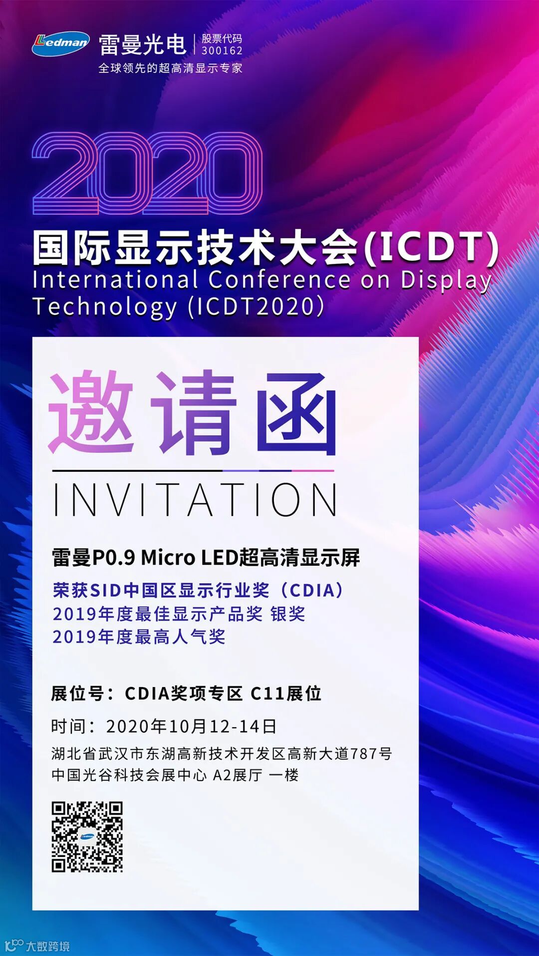 2020国际显示技术大会(International Conference on Display Technology,简称ICDT)是覆盖17个显示领域,囊括各大上中下游显示企业的大型展会。