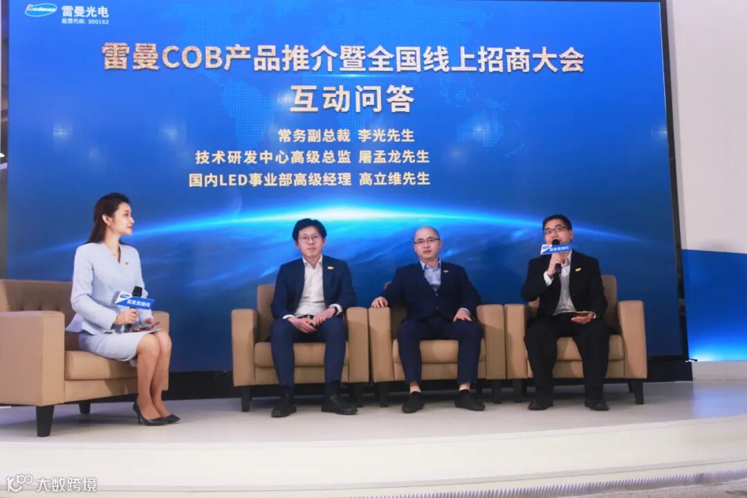 在之后的问答环节中,雷曼光电常务副总裁李光、技术研究中心高级总监 屠孟龙、国内LED事业部高级经理高立维就大家关心的“雷曼COB色彩艳丽显示锐利的秘诀”、“雷曼LEDHUB的优势”、“雷曼如何保证新的合作伙伴的利益”、“雷曼对经销商的政策”、“雷曼如何保障售后”“为什么说Micro LED是未来的终极显示技术”等问题进行了详细解答。