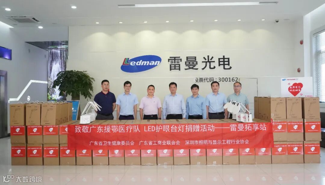 为感谢这些在突如其来的新冠疫情面前,义无反顾冲上一线,用自身的血肉之躯,筑起一道道生命防线的援鄂医护人员,深圳市照明与显示工程行业协会联合广东省卫生健康委员会、广东省工商联,开展 LED护眼台灯捐赠活动,由雷曼拓享(雷曼光电全资子公司)等六家企业、为广东医疗队 2495 名队员每人赠送一盏 LED 护眼台灯。