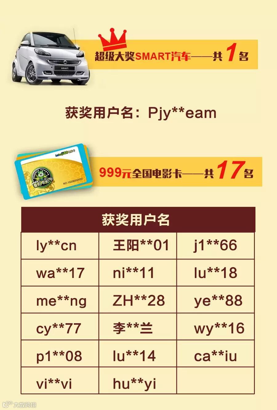让小伙伴们嗨到最高点,微信后台也被无限刷爆的“七彩壕礼,诚意来袭”活动终于完美收官,感谢你们的踊跃参与和热情支持!现在,我们将本次活动的中奖用户名单公布如下,看看有哪些幸运的小伙伴儿赢得了我们的史上最强大奖——“SMART汽车”和其他重磅好礼呢!