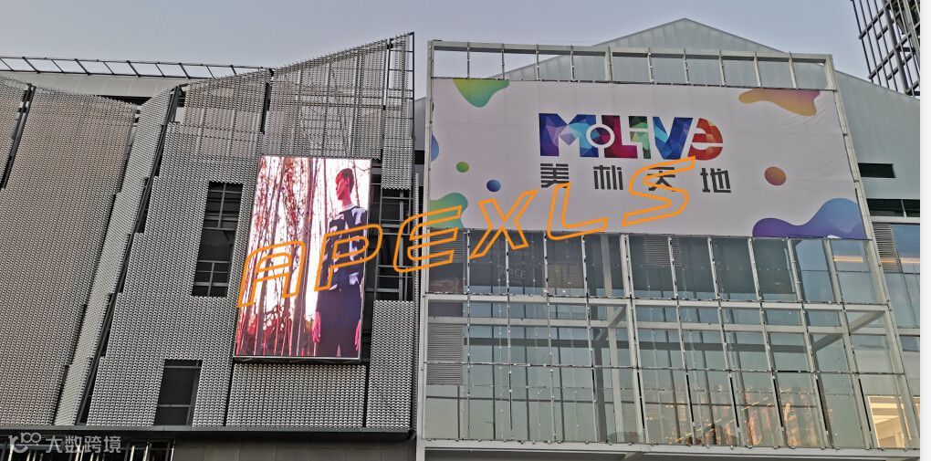 美林M·LIVE天地南面主入口处采用P10户外全彩显示屏,面积约35平米。