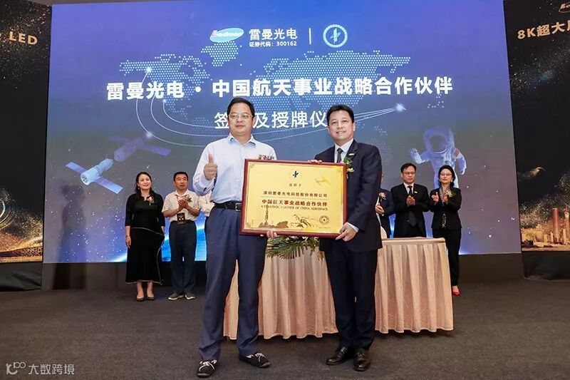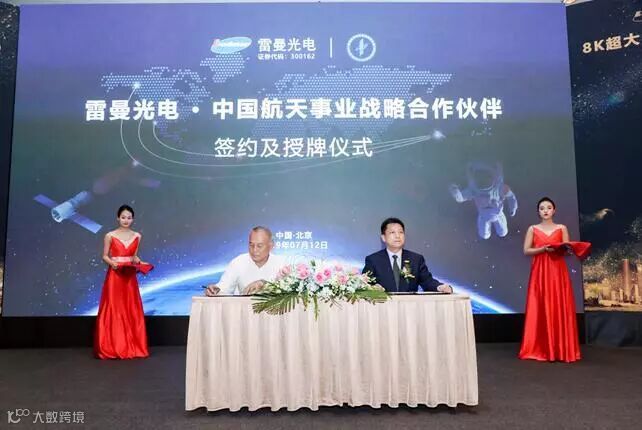 2019年7月12日,中国LED领军企业雷曼光电与中国航天基金会战略合作伙伴签约及授牌仪式在北京举行。雷曼光电与中国航天事业牵手,正式成为"中国航天事业合作伙伴"。中国航天基金会理事长吴志坚、雷曼光电董事长兼总裁李漫铁等领导和产业链嘉宾,以及业内外媒体共同出席会议并见证这一重要时刻。