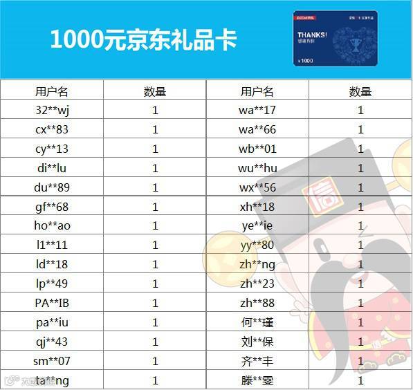 五、 荣获“理财匠,理财降”活动1000元京东礼品卡的用户: