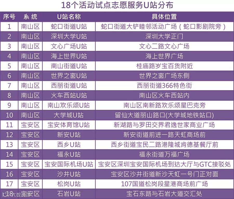 爱心捐款 免费看球:宝安区、南山区18个志愿者U站试点开展爱心捐款免费观赛活动,市民在U站捐款后即可获得比赛门票兑换券(每场次兑换门票上限3000张,每个U站数量不等,发完即止),凭兑换券可到深圳雷曼队主场比赛现场售票处兑换门票,凭门票入场观赛。此活动所募捐款用于支持深圳义工事业的发展。(相关U站地址见本文文末,将会根据情况进行调整,并每期更新)