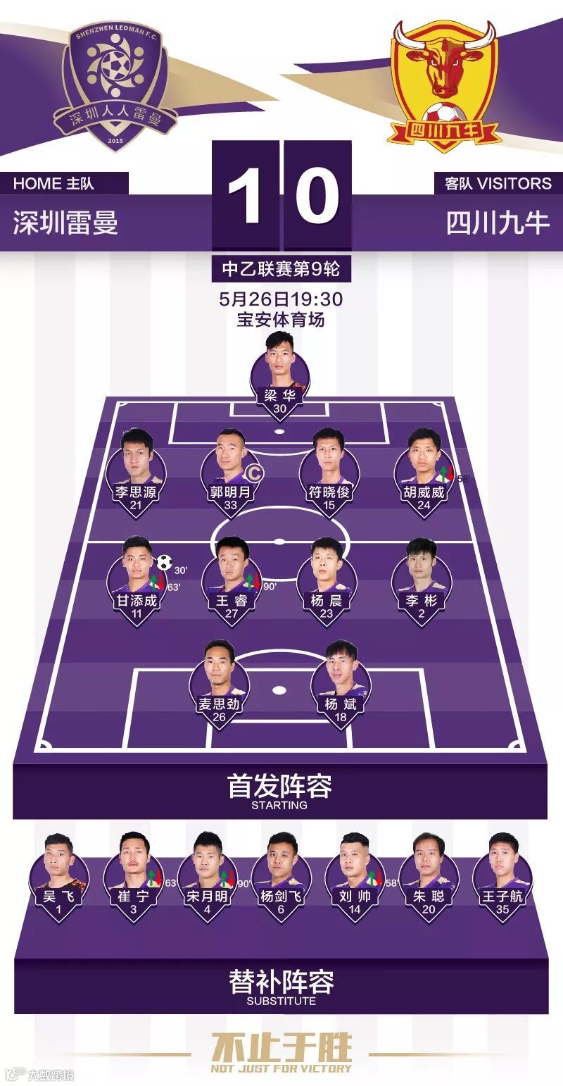 5月26日19:30,2018中乙联赛第9轮,深圳雷曼坐镇宝安体育场迎战四川九牛。