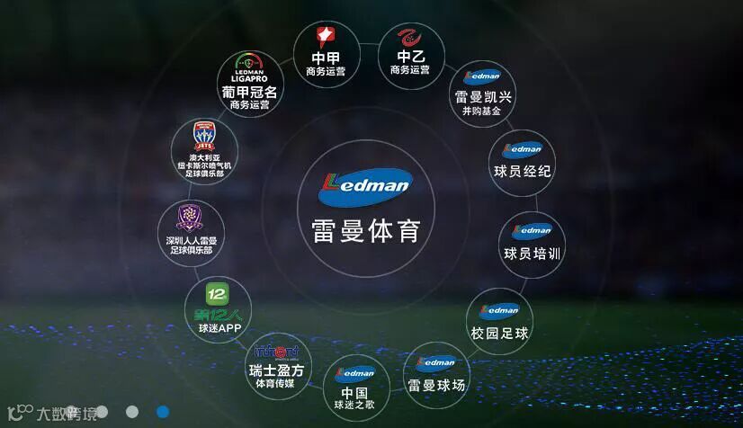 雷曼股份作为LED显示高科技行业首家上市企业,主要从事高端LED显示、照明、封装等领域,从2011年进入足球领域以来就将体育作为第二产业进行全球性布局。雷曼股份先后为中超、中甲、中乙等中国足球职业联赛以及“熊猫杯”U19国际邀请赛、“F5WC”国际五人制足球邀请赛等提供高质量的场边LED显示屏产品和服务;2015年雷曼大股东个人投资成立深圳人人雷曼足球俱乐部并推出中国球迷之家---“第12人APP”、发布《中国球迷之歌》;2016年雷曼股份间接持有万达、IDG资本、东方明珠、华人文化产业投资基金等参投的世界第二大体育传媒集团、拥有FIFA世界杯亚洲区媒体转播和分销权的瑞士盈方体育传媒集团3.5%的股份;同年,通过雷曼大股东个人旗下的雷曼投资公司全资收购澳大利亚纽卡斯尔喷气机足球俱乐部10 0%股权;2017年与葡甲科英布拉大学足球俱乐部合作正式启动中国球员留洋计划。