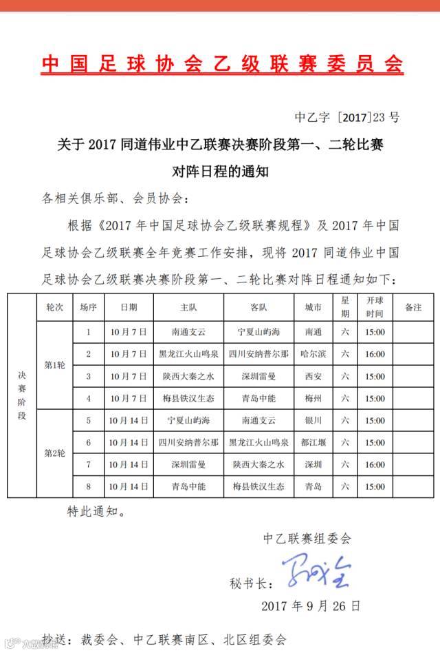 2017同道伟业中国足球协会乙级联赛决赛阶段第一轮,即将于2017年10月7日在西安打响,深圳雷曼将远赴客场,在渭南体育中心迎战陕西大秦之水。