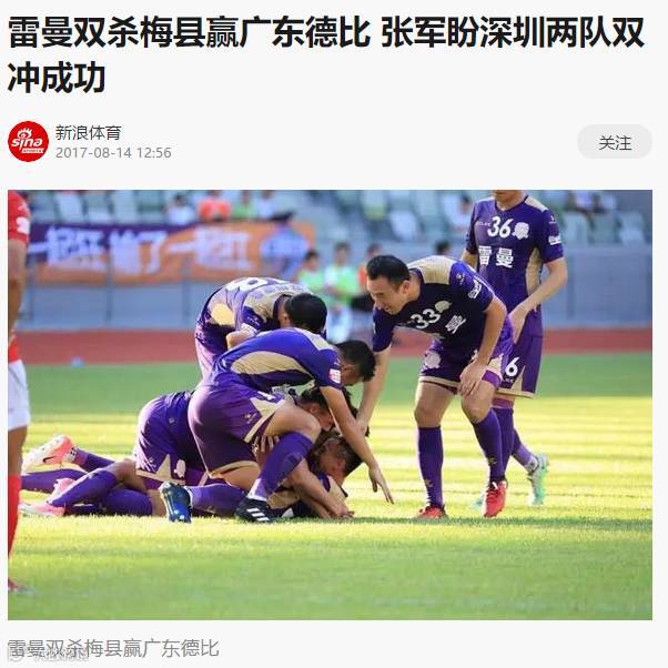 人人雷曼主帅张军赛后也盛赞梅县球迷的气势点燃了宝体。他同时呼吁:“无论是老深圳队还是新深圳队,都需要球迷的关注和支持。尤其是进入到淘汰赛阶段,更需要主场球迷的呐喊——有你们的支持,我们的子弟兵起码能增加30%的跑动距离!”