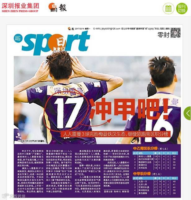 目前,深圳雷曼积40分继续领跑中乙南区诸强,张军表达了他的一个心愿:希望深圳两支球队都能升级,雷曼人人冲甲,佳兆业冲超,两队“双冲”成功。