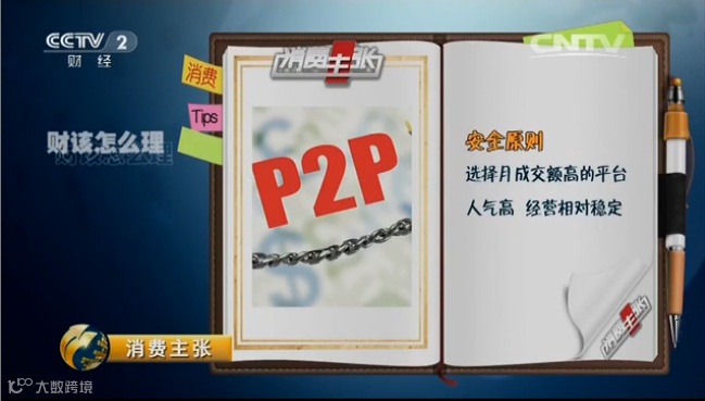 昨日,CCTV2财经频道播出的《消费主张》栏目针对投资者如何挑选P2P平台、规避投资风险等话题与多位业内人士以及投资者进行了探讨,告诉你怎么在P2P大潮中赚到钱,财该怎么理才最安全。