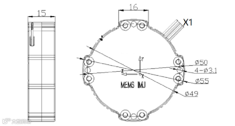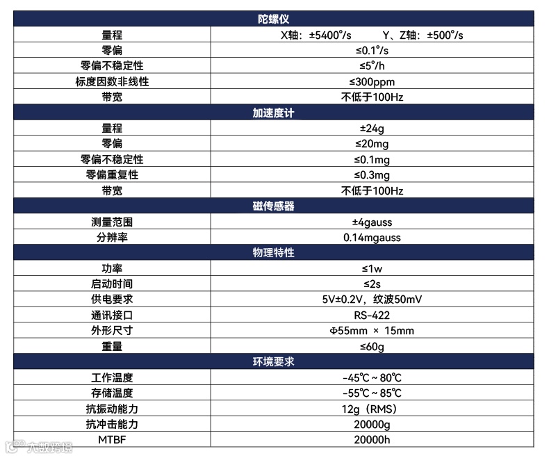 MNU107 内置三轴陀螺仪和三轴加速度计,可以测量载体的角速率、加速度、温度等信息。