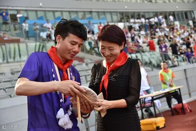 对!“暴走”(球迷马建雷饰)那天也来主场参与活动了,现场的你可能还看到了他,并领到了他代为发放的俱乐部纪念徽章。