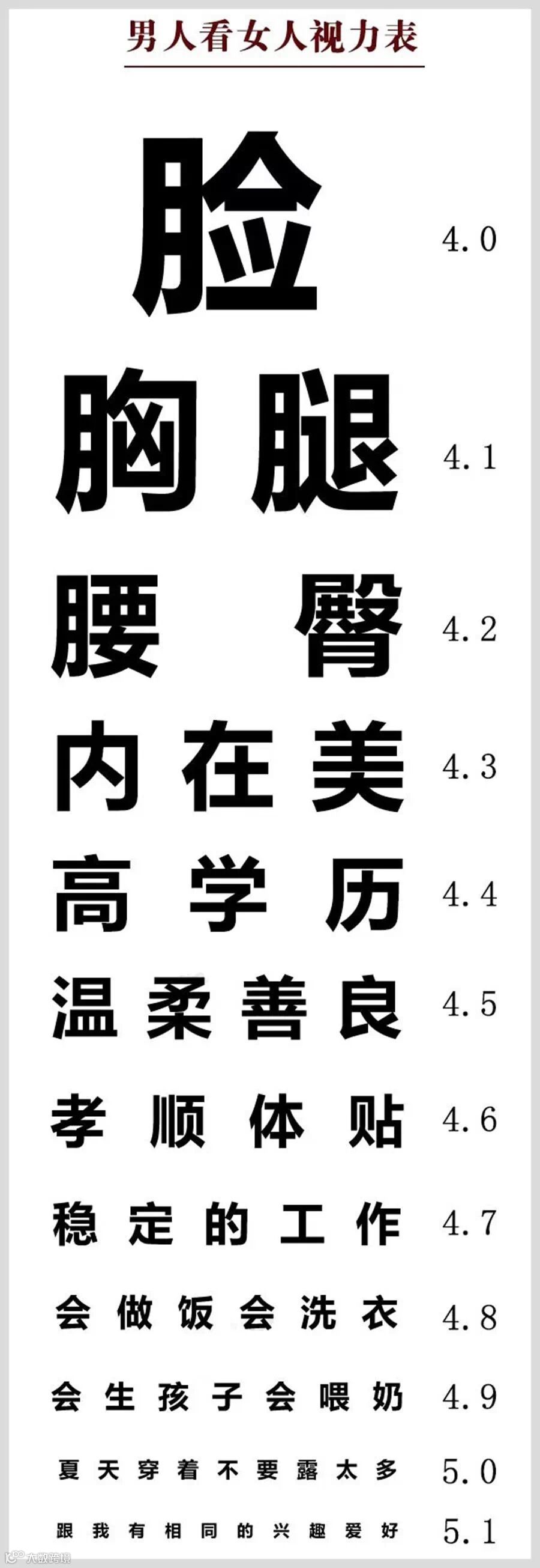最近,一组2015年最流行的视力表在网上爆红!看完,节操不在,膝盖跪烂!快来自行对照一下!不管你信不信,反正我是信了……