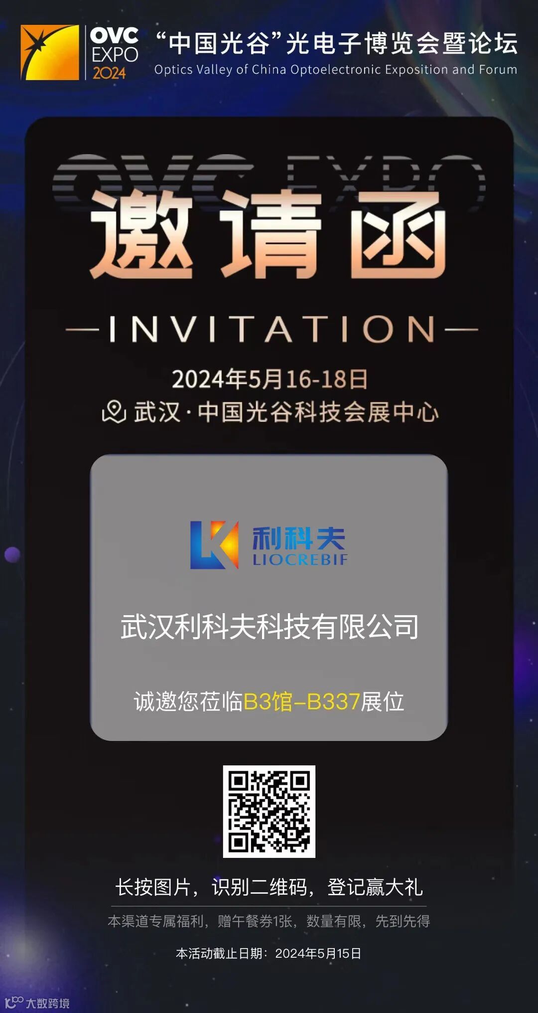 武汉利科夫将在B3馆亮相,展位号B337,携优秀的产品和强大的解决方案震撼登场,诚挚地邀请您前来洽谈及体验!