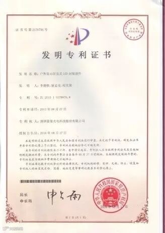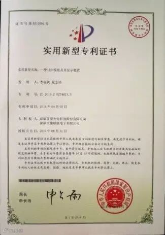 经中华人民共和国国家知识产权局考证,根据《中华人民共和国专利法》规定,近期,深圳雷曼光电科技股份有限公司获得四项专利证书,其中,专利《LED支架》、《户外显示屏及其LED封装器件》和《LED倒装结构及倒装工艺》为发明专利,专利《一种LED模组及其显示装置》为实用新型专利。