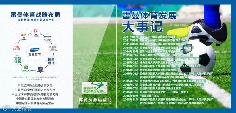 2011年雷曼股份与中国足协、中超足球联赛公司达成协议,成为中国足球协会战略合作伙伴、中国足球超级联赛官方合作伙伴。为中超足球队主场提供LED显示屏,对中超足球联赛的品牌传播起到重要的推进作用。