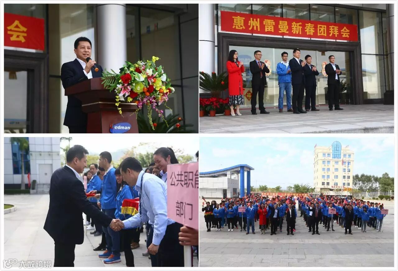 李董赶赴惠州雷曼参加新春团拜会。惠州雷曼的同事们精神抖擞,整齐列队,齐聚主楼前广场。李董首先向在场的全体雷曼人致新春问候及祝福,李董表示惠州雷曼作为雷曼股份重要的生产制造基地,希望每一位雷曼人全力奋进,为公司创造利润,为家庭创造幸福,力争达成个人目标和公司目标双丰收。随后李董宣布“开工鸣炮”,惠州雷曼工业园大门口届时鸣响鞭炮,为新年开工奏响前进的号角,李董带领高管人员向员工派发开门利是,送上最真诚的祝福与问候,寓意在新的一年红红火火,吉祥如意。