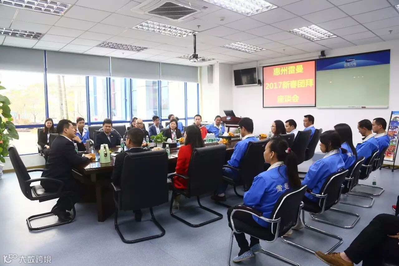李董与2017年度优秀员工及管理人员代表在惠州雷曼大会议室进行新春座谈。大家的探讨从春节家庭目标到城乡变化延伸到个人工作与公司发展目标。随后,分管国际显屏事业部的黄海副总裁分享2017年的销售与生产态势及目标,给予同事们更多的信心和力量。最后,李董畅谈未来雷曼4.0战略布局与发展方向,希望各部门间协同共进,互相配合,在开篇之年全力打造新目标,取得新业绩。