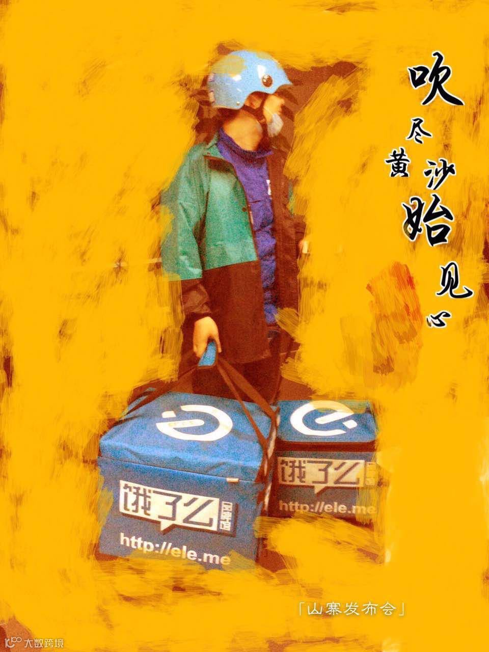 饿了么,一个快递小哥,在大黄中送餐,“吹尽黄沙始见心”