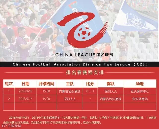 《2016中国足球协会乙级联赛》深圳人人完整对阵日程表