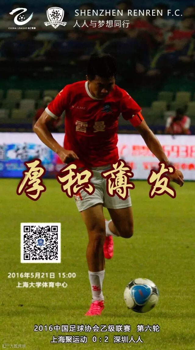 《2016中国足球协会乙级联赛》预赛深圳人人完整对阵日程表