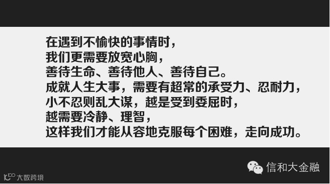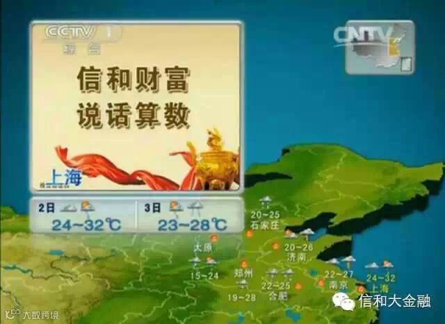 从9月1日起到12月31日,每日新闻联播前6:53分播出5秒信和财富 说话算话,新闻联播后19:31分信和财富将在CCTV-1《天气预报》“上海版块”及CCTV-13新闻频道同时“出镜”,小伙伴们记着关注我们哦~~信和大金融说话算数!