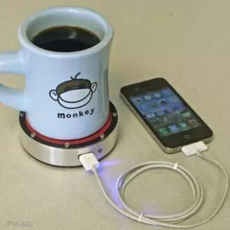 看上去像是一块金属杯垫,它的特色不需要任何外接电源,只需一杯热饮或冷饮就能帮手机充电。采用两面式设计,红色面可以把热能转换成电力,待指示灯号亮起,可通过USB连接线来帮手机、平板来充电。把冰凉的可乐或啤酒放在蓝色的那一面上,也可把低温转换成电力来充电。