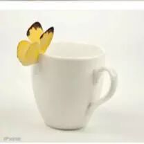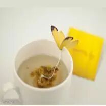 蝴蝶茶包(Blooming Tea),茶包挂绳的另一头是纸做的蝴蝶,泡茶的时候,这蝴蝶可以卡在茶杯边沿上,像挂钩一样把茶包线挂住,方便处理茶包,又增加美感。