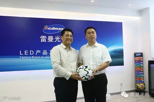 双方在集团五楼大会议室首先观看了雷曼光电宣传片以及中超中甲比赛宣传片,在观看的过程中询问讨论,宋建明市长一行对雷曼给予了高度的评价与认可。随后双方进行了亲切的会谈,李董向家乡的各位领导致欢迎词,同时也介绍了雷曼公司的基本情况和发展状况。他指出雷曼光电是深圳首家于深交所创业版上市的LED企业,在发展之初便奠定了优势,雷曼一直秉承着提高产业水平,创造核心价值,跻身于行业的翘楚,更加致力于创造LED的世界化高端品牌。与此同时,雷曼也通过产品的优势介入到体育产业当中,现阶段主要以足球产业为主。自2011年以来,雷曼先后成为中国足协战略合作伙伴,中超足球联赛官方合作伙伴,中甲足球联赛俱乐部官方赞助商。自从中央颁布《中国足球改革方案》以来,全国各地都重视中国足球的发展,在这样的大环境下,雷曼以实际行动支持中国足球的发展,积极与中国足球各方力量合作,不仅在足球场上进行产品的维护服务,在互联网方面也开发定位于球迷的相关软件,全方面、高标准地打造足球市场发展,形成多元化的经营模式,以体育为企业的第二产业更加发展壮大。