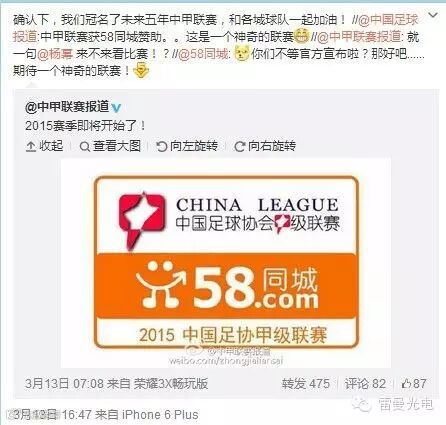 58同城网CEO姚劲波在个人微博上确认58同城将冠名未来五年的中甲联赛,这对于中甲联赛来说绝对是一个利好消息,中甲联赛11年来首次拥有了联赛冠名赞助商。